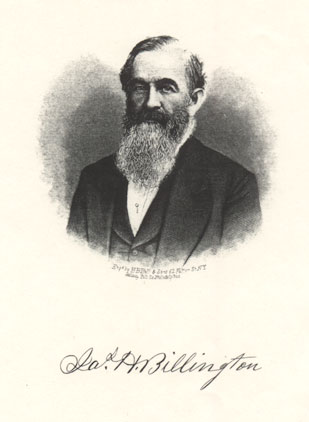 Samuel's grandson, James H. Billington I (left), grew up in the Oriskany area. He married Lovina Perkins there and then moved to Philadelphia in the 1840s to sell blue jeans. He had earlier become involved in politics and had coined the slogan "Free soil, free labor, free minds, and free men," which the Republicans adopted in 1856. He helped bankroll the abolitionist press in Pennsylvania and served on the Philadelphia city council during the Civil War.
